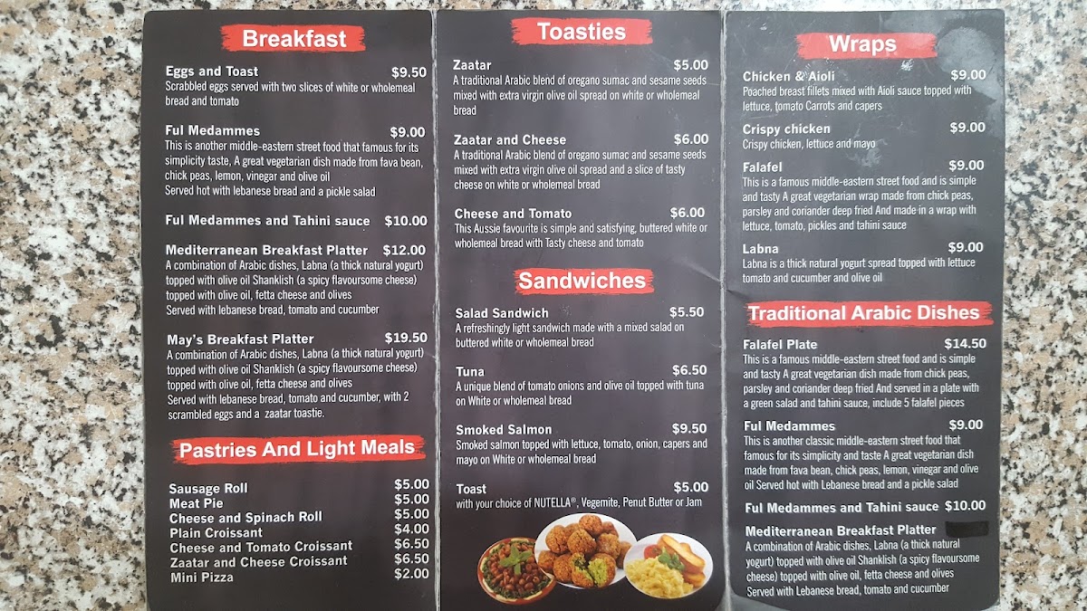 - Toasties: Zaatar, Zaatar and Cheese, Cheese and Tomato